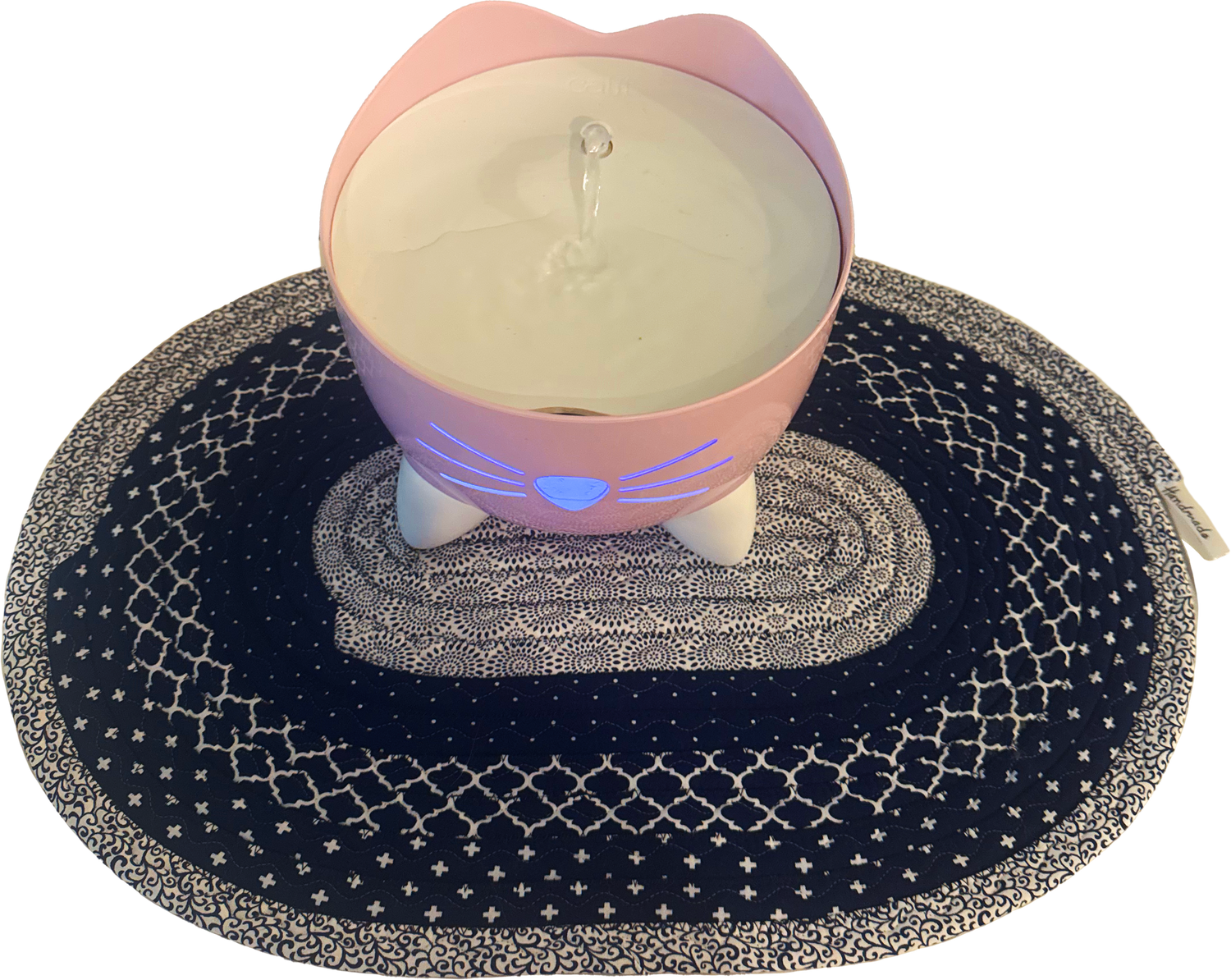 Colorful mats for Cats and Dogs. For use under feeding bowls and litter boxes, as sleeping mats & rugs around the house. Machine washable.
